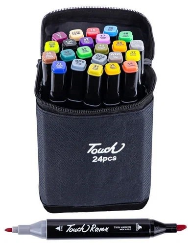 Набор скетчмаркеров двухсторонних 24цв. 1-7мм (092-24/7877/No name) спирт. основа, черный 4-гран. корпус, сумка на молнии