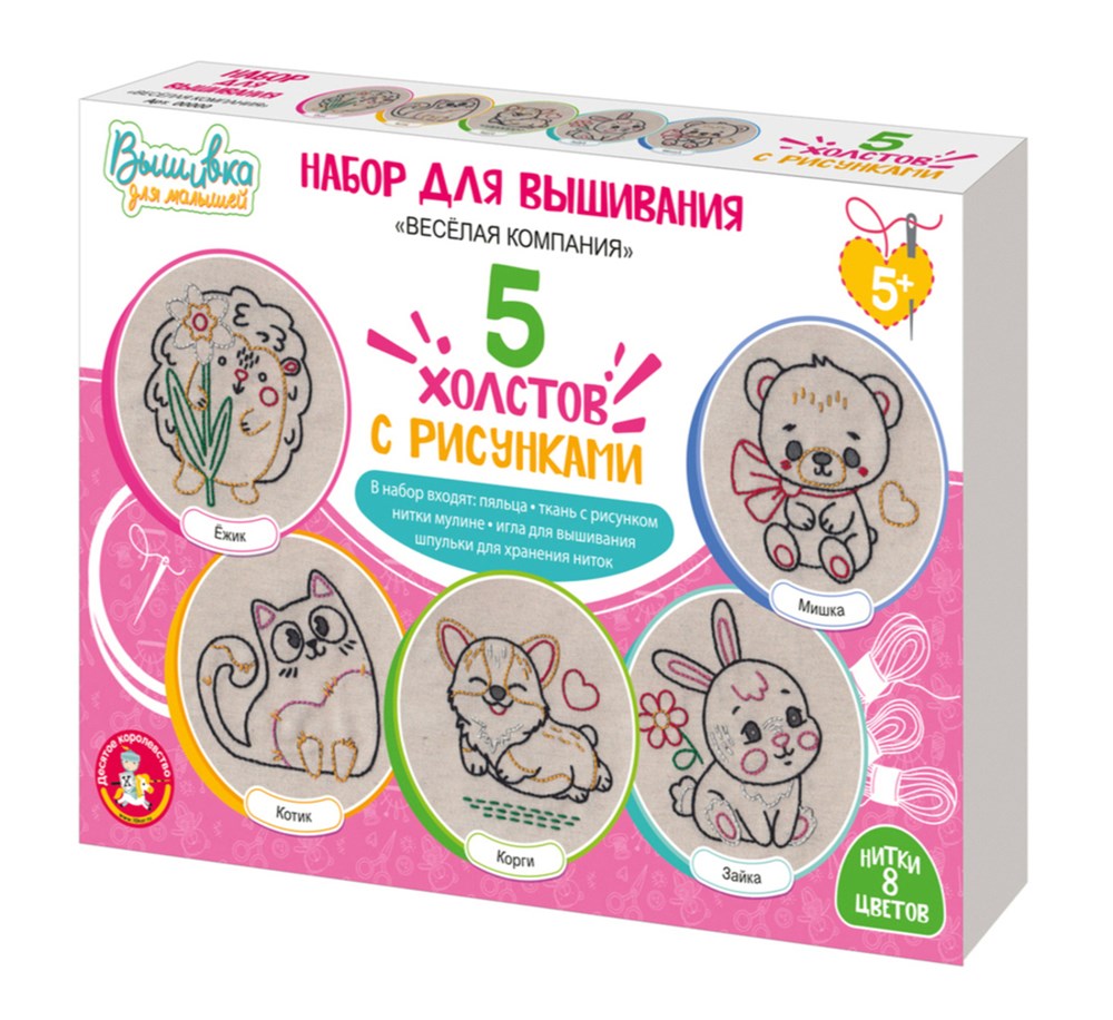 Набор для вышивания "Вышивка на холсте. Веселая компания" 5 холстов (05837) 5+, "Десятое королевство"